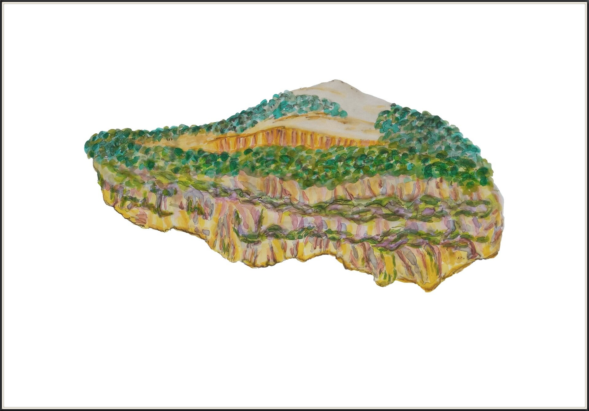 aarde 3 (70 x 100 cm, oi inkt en aquarelverf op papier)