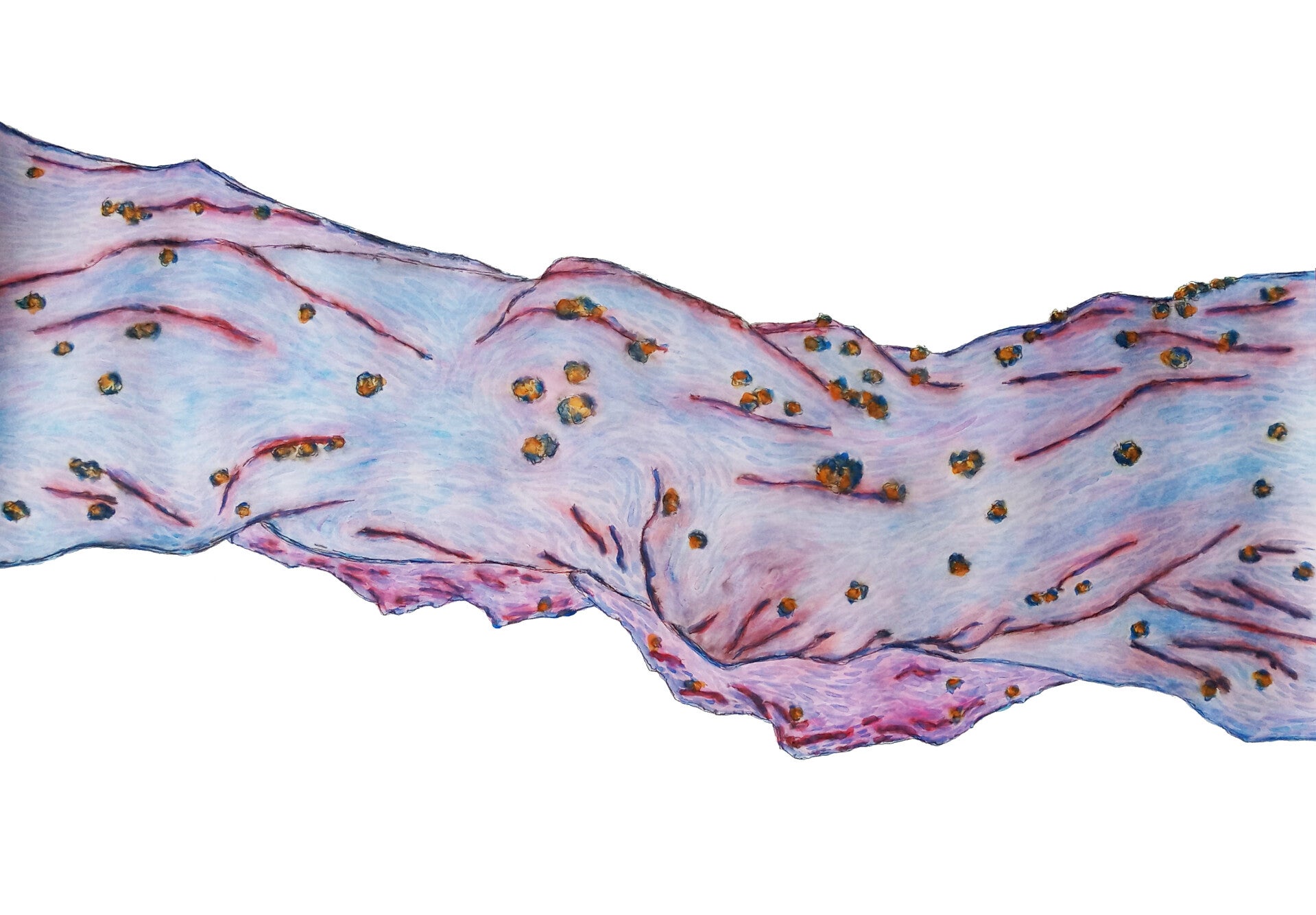 paysage fier (70 x 100 cm, oi inkt en aquarelverf op papier)