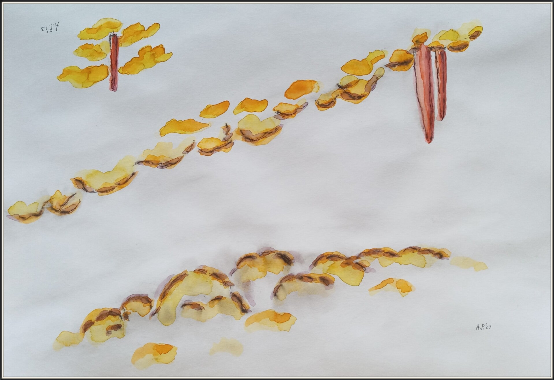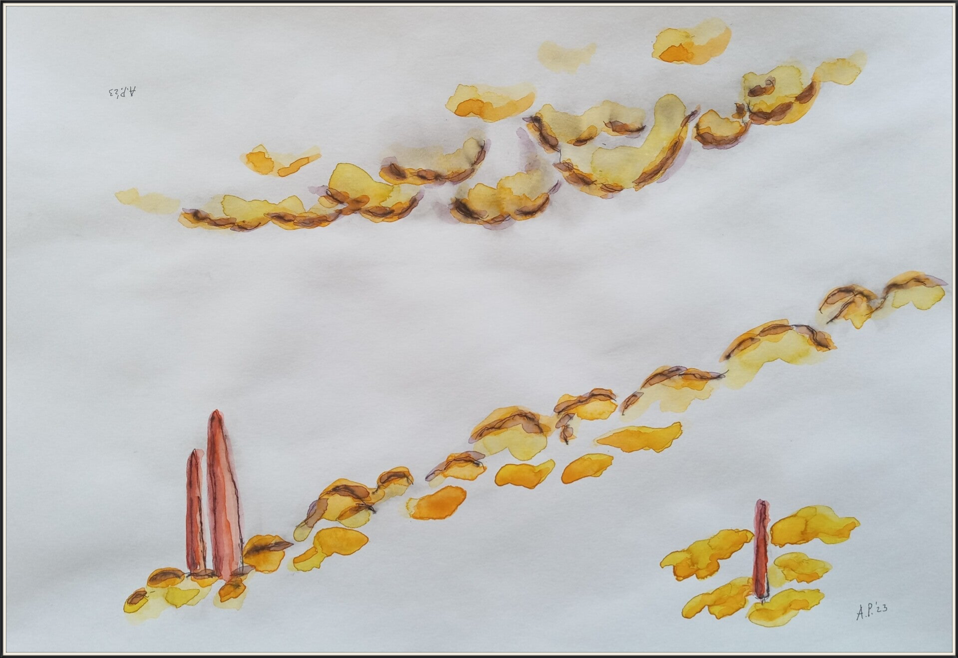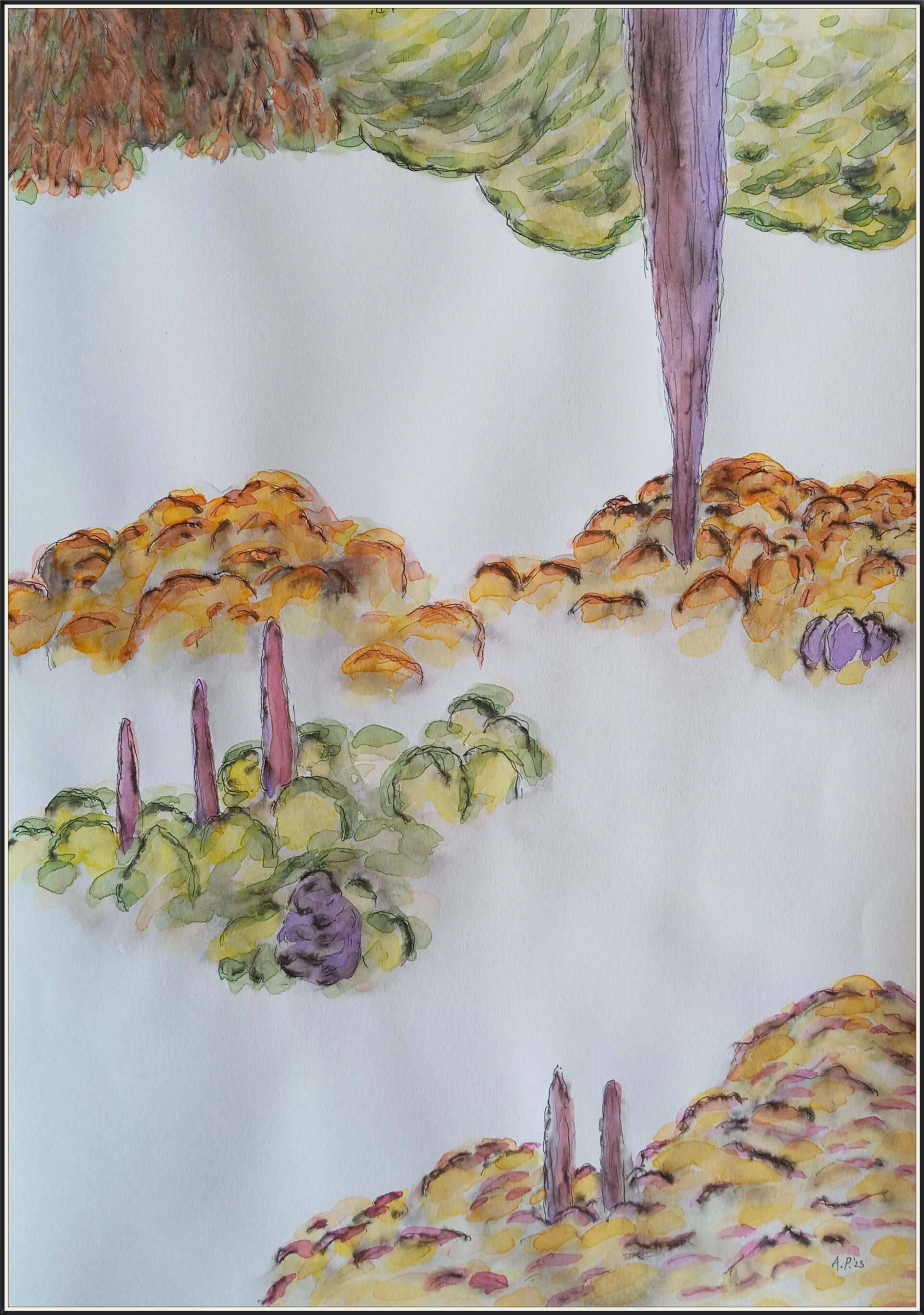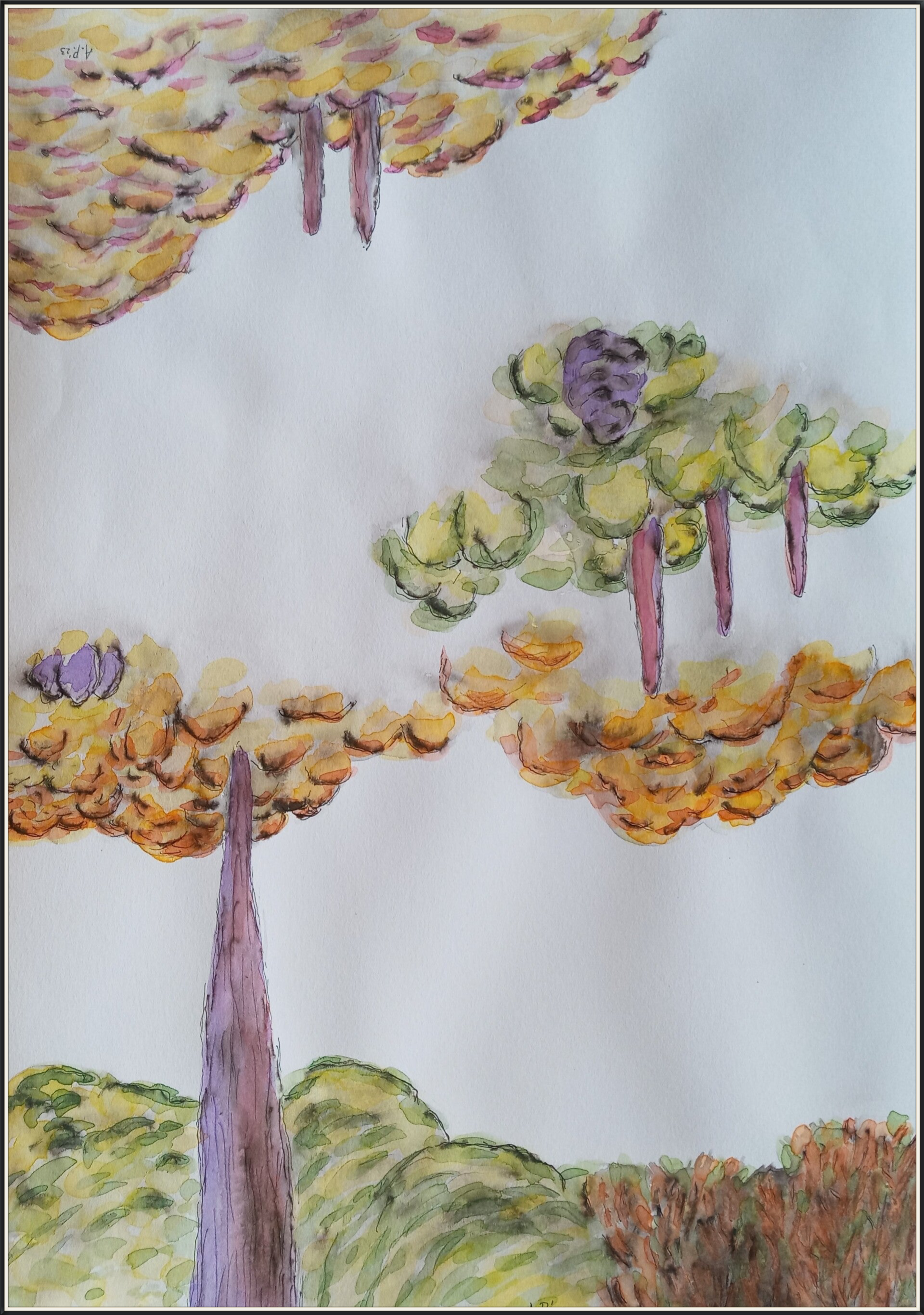 schetsen A3 (29,7 cm x 42 cm) oi inkt en aquarelverf op papier