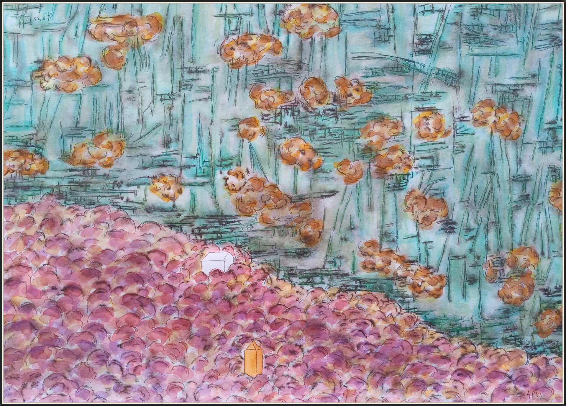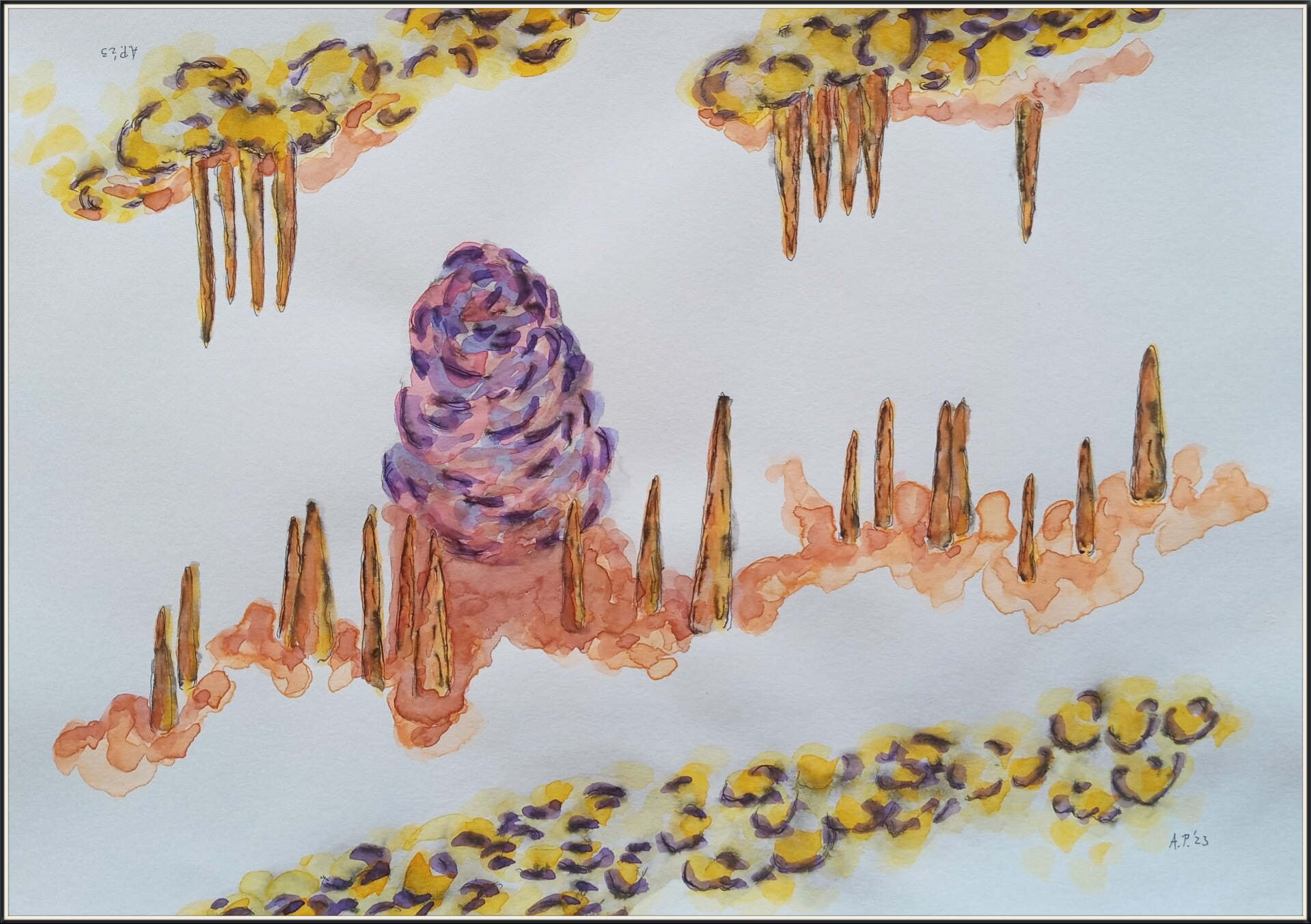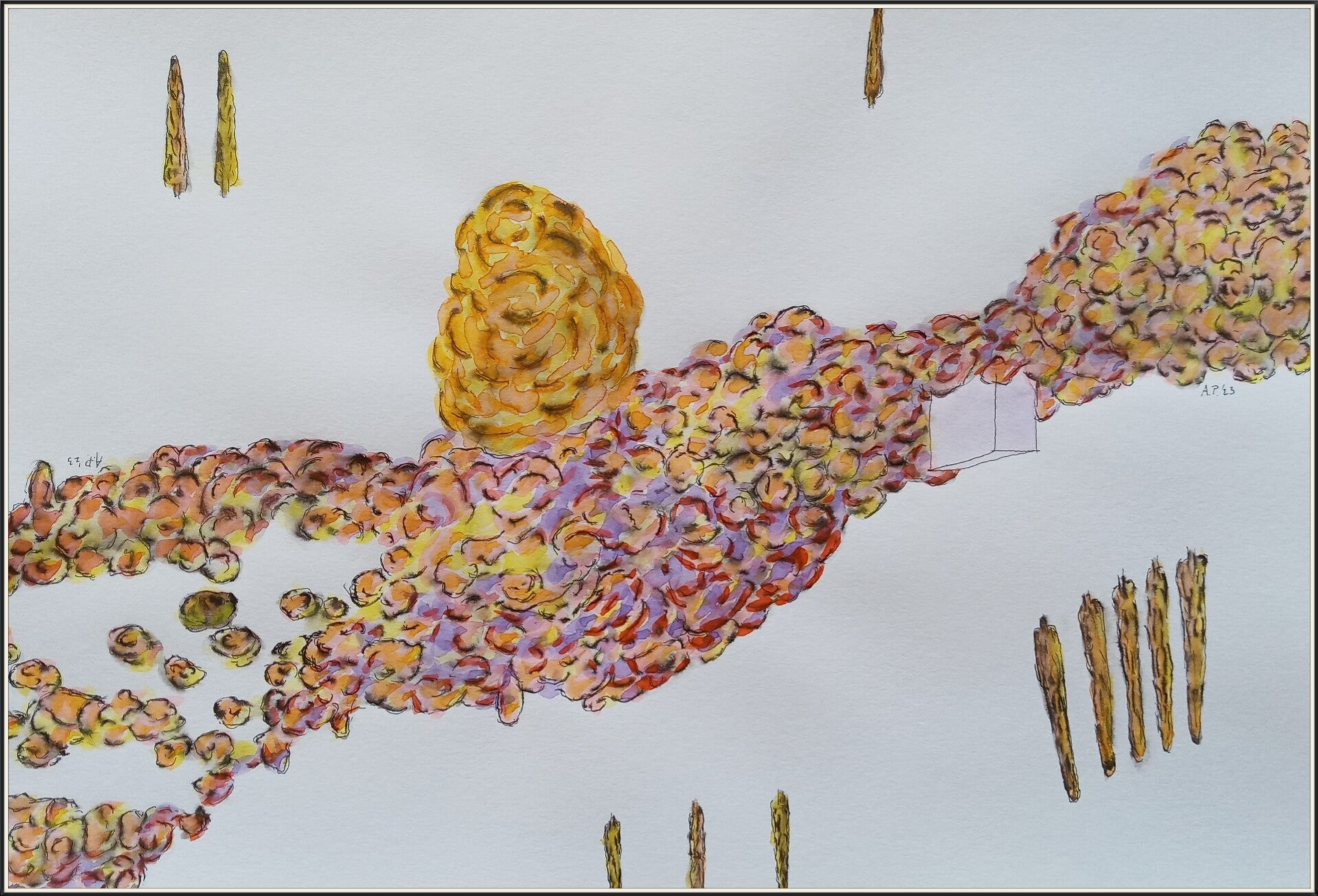 schetsen A3 (29,7 cm x 42 cm) oi inkt en aquarelverf op papier