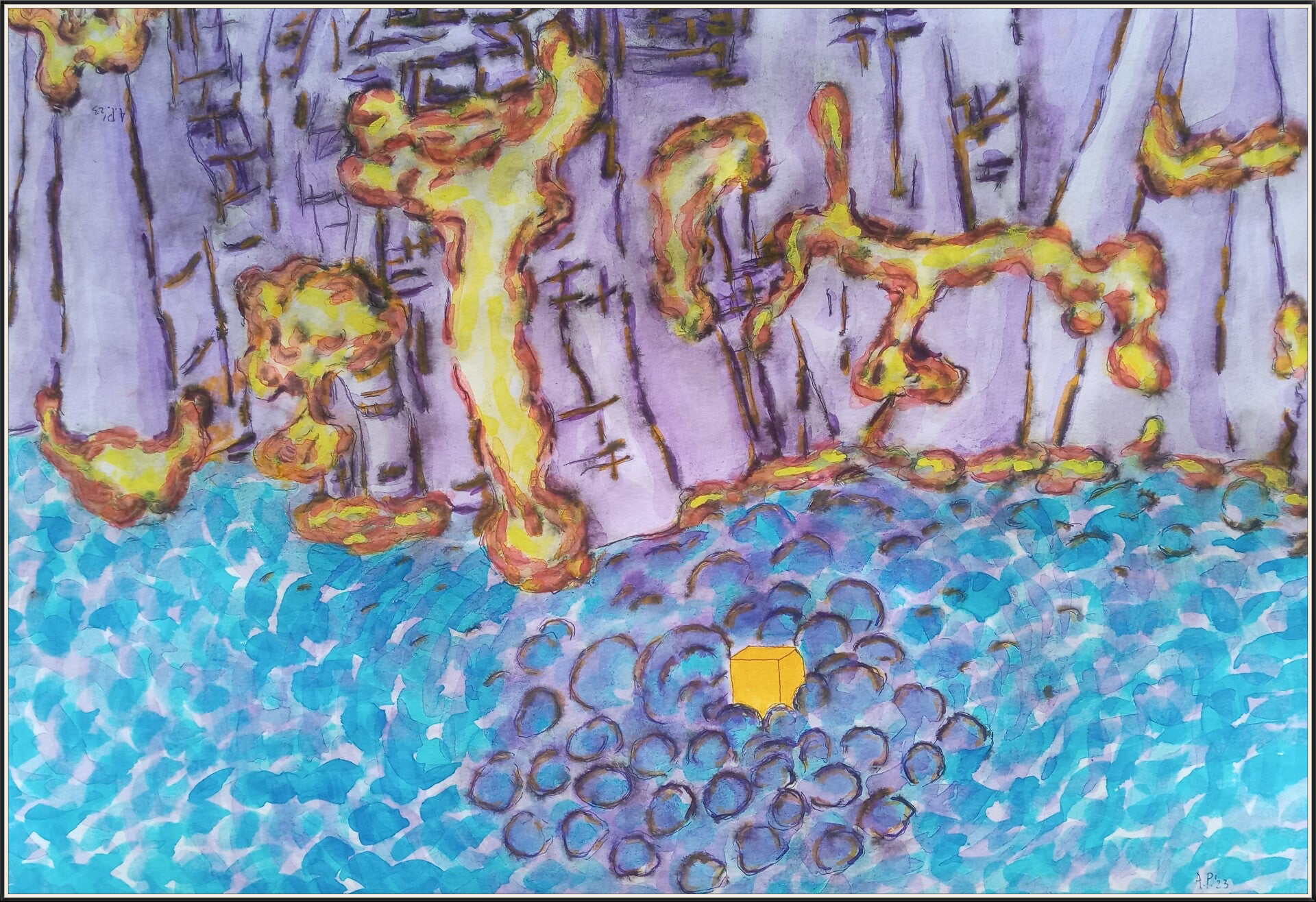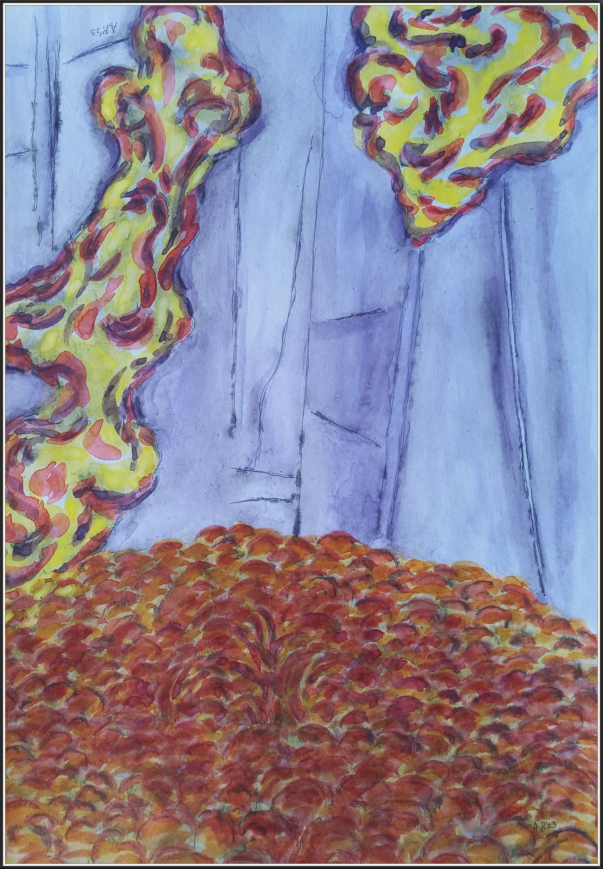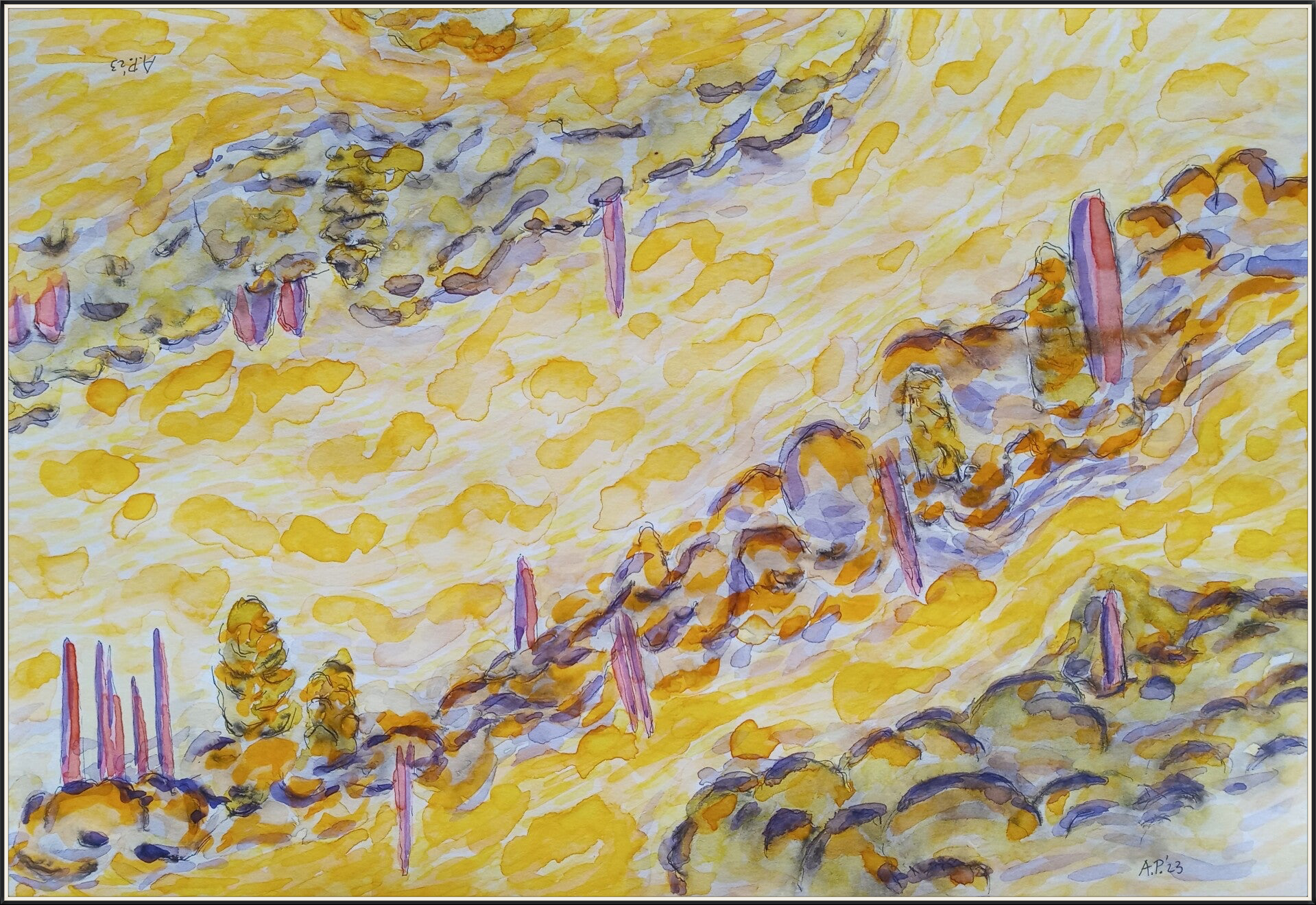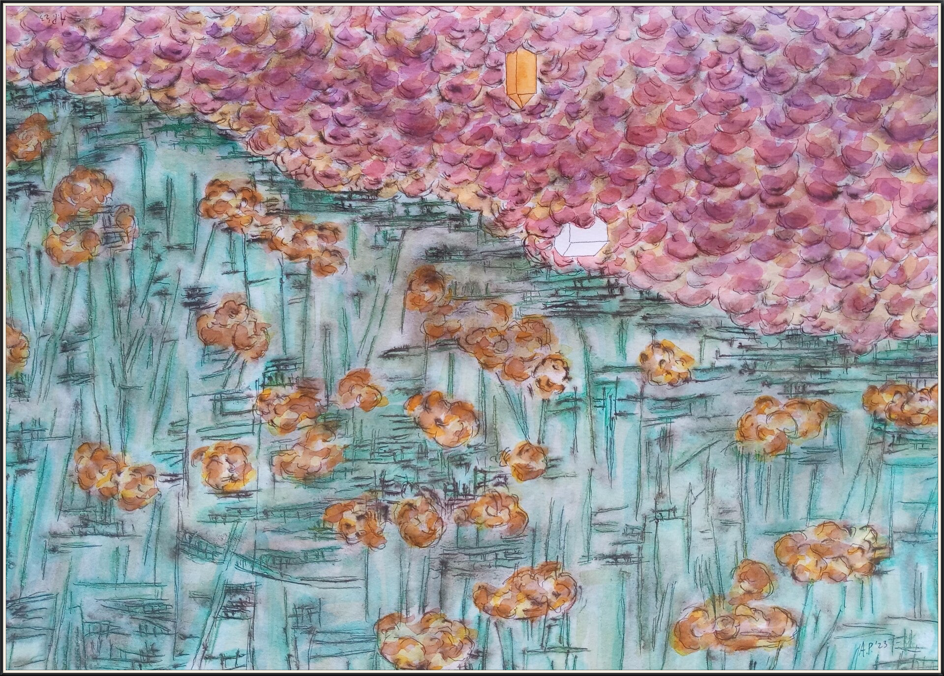 schetsen A3 (29,7 cm x 42 cm) oi inkt en aquarelverf op papier
